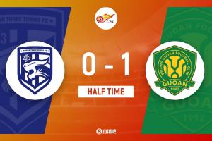 第45分钟,王刚右路底线位置无人盯防的传中,禁区内法比奥头槌破门!北京国安1-0领先武汉三镇↓