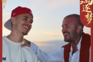 今天是大年初一,贝克汉姆在个人微博晒出与24岁儿子罗密欧·贝克汉姆的合照,他同时配文:听说过本命年要穿红色🔴马年是罗密欧的本命年🐎希望中国朋友们马年快乐!