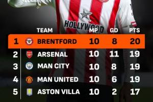 数据显示,布伦特福德近10轮英超6胜2平2负,积20分,是同期赢得积分最多的英超球队,甚至超过了阿森纳、曼城和曼联等豪门。