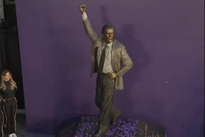 油头神采 紫金永存!湖人传奇主帅帕特·莱利雕像正式揭幕!