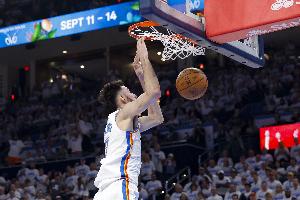 本场比赛,雷霆内线霍姆格伦表现可以,做好防守的同时贡献两双,首发出战26分钟,投篮10中4,三分球2中0,罚球6中4,拿下12分11篮板2助攻2盖帽的数据,正负值+10。